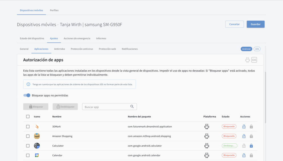 La gestión de dispositivos móviles (MDM) le devuelve el control sobre el panorama de dispositivos móviles de la empresa. Con nuestra solución MDM, usted gestiona de forma centralizada la seguridad de sus dispositivos móviles iOS y Android de acuerdo con las directrices actuales de protección de datos. Gracias a la conectividad en la nube, los dispositivos reciben siempre las últimas actualizaciones de protección, incluso fuera de la red de la empresa.