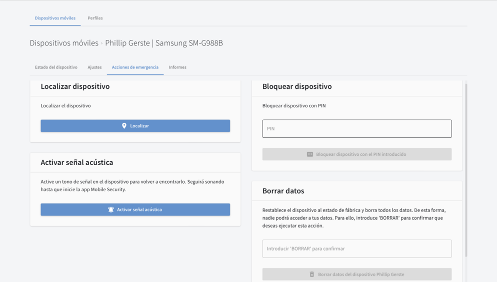 Proteja los datos confidenciales de accesos no autorizados: Localiza, bloquea o borra dispositivos a distancia.