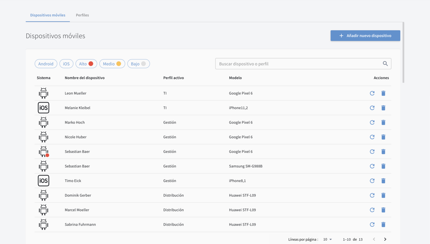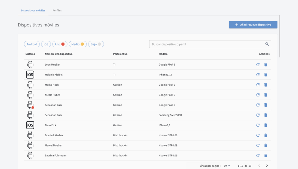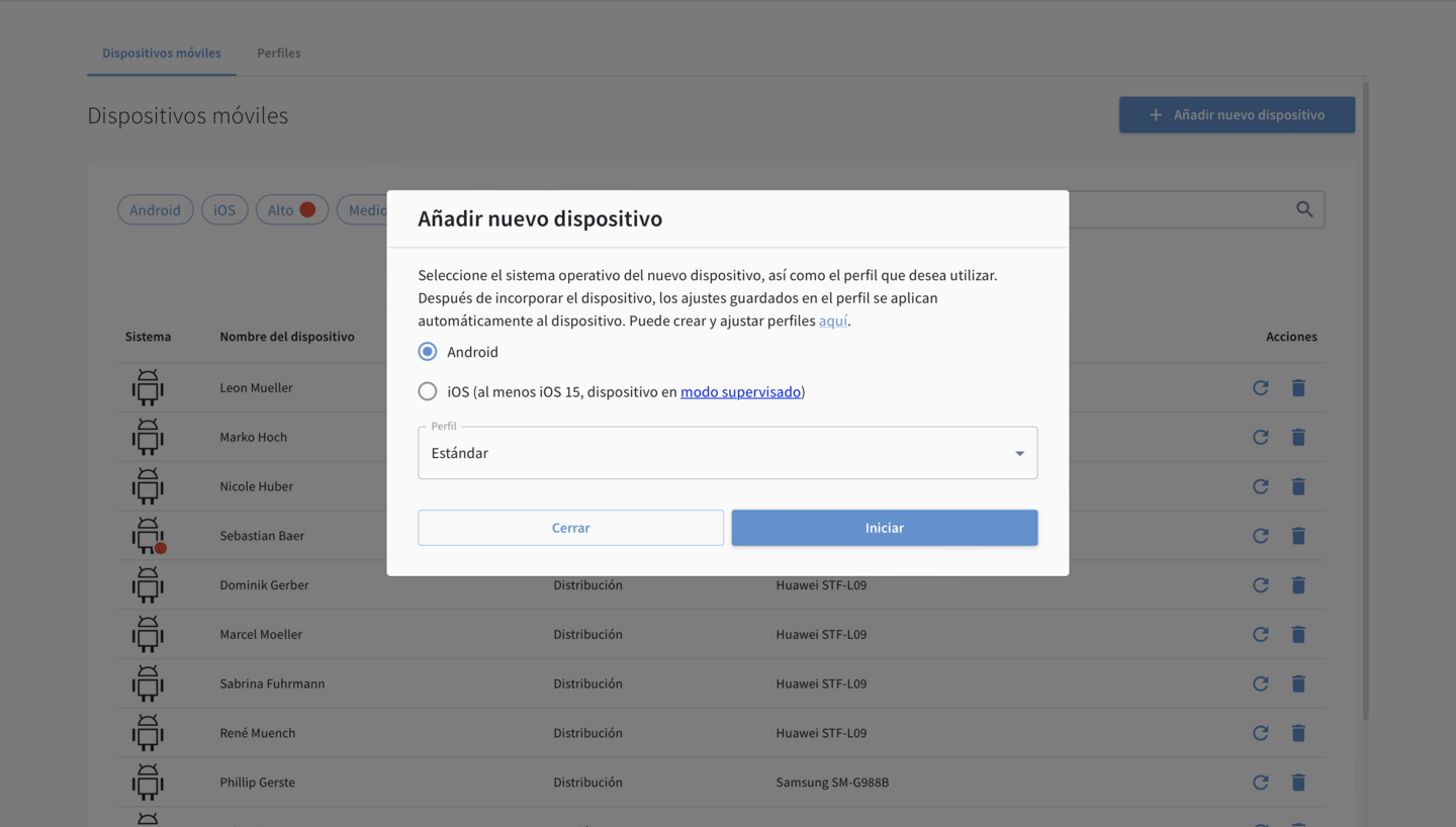 Asigne dispositivos móviles departamentales o locales a perfiles individuales en función del nivel de seguridad.