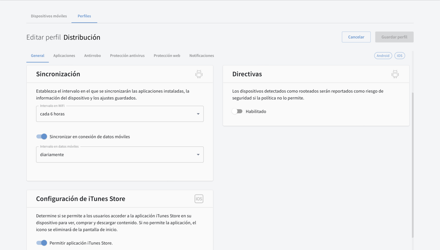 Implante fácilmente nuevas configuraciones y políticas de seguridad de forma centralizada en todos los dispositivos.
